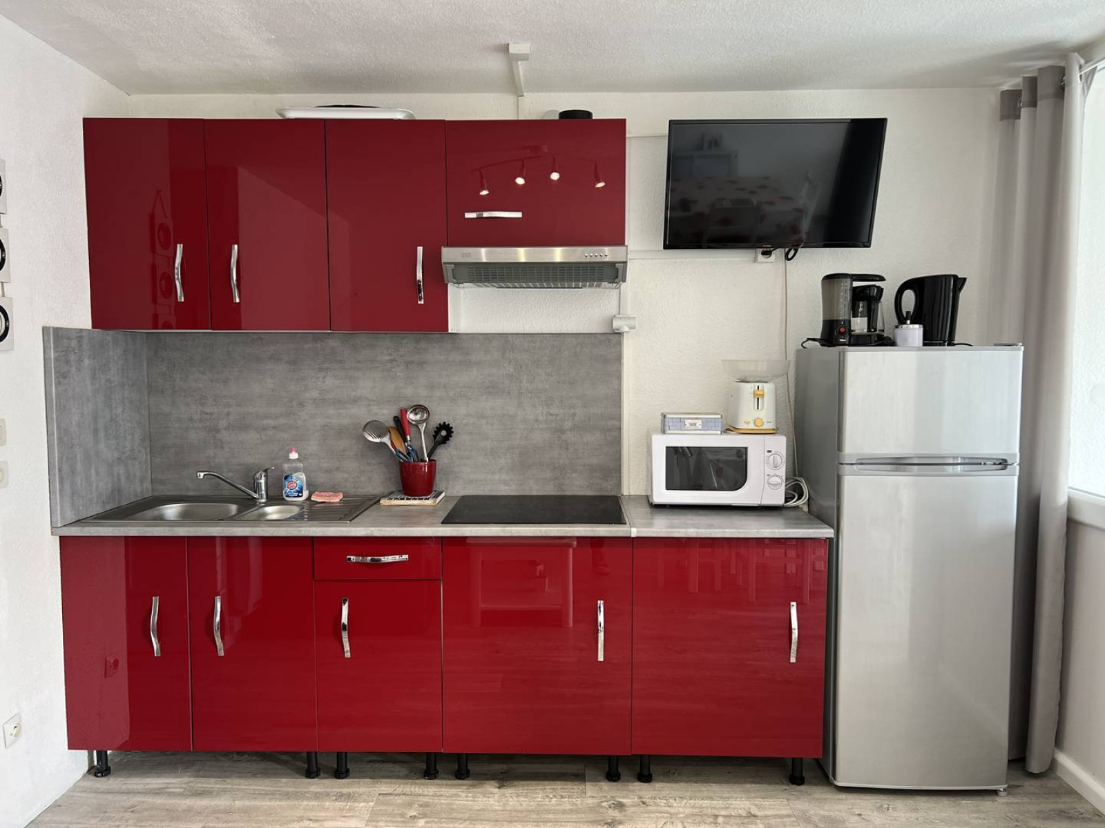 Il est composé d'un séjour avec coin cuisine équipée, d'une chambre avec un lit double, d'une salle d'eau avec douche et WC.