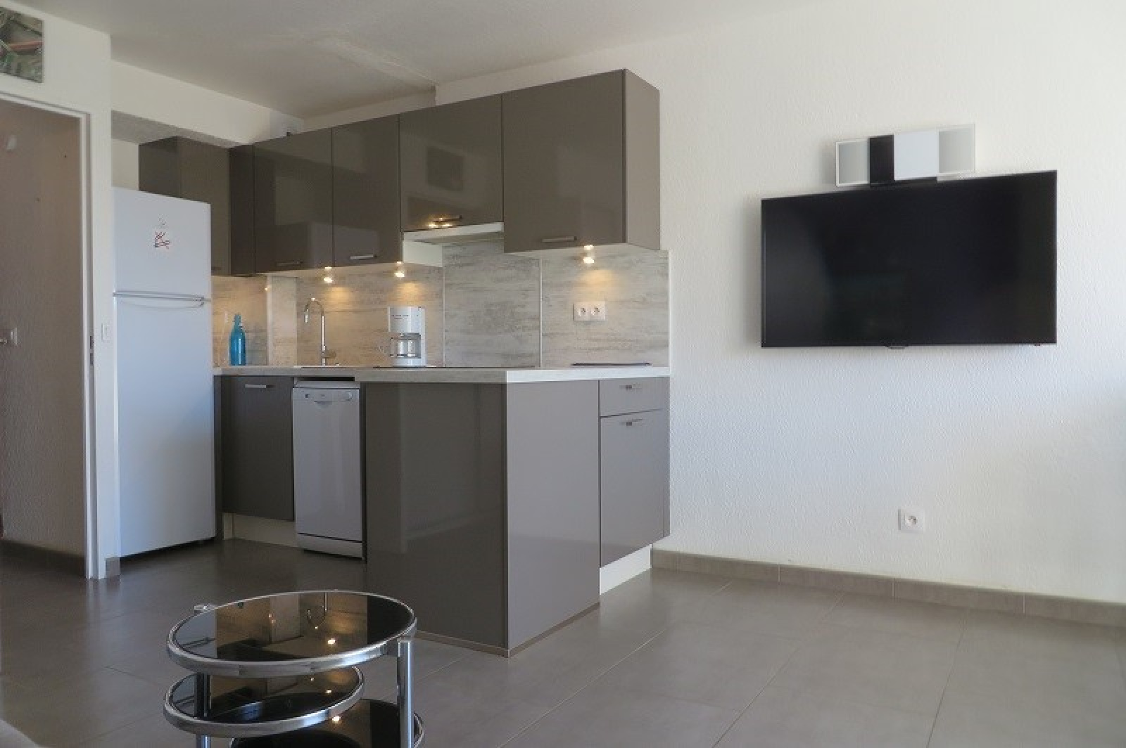 Il se compose d'un séjour avec coin cuisine équipée et terrasse, une chambre, salle d'eau avec douche , WC indépendant, une cabine avec fenêtre. Un parking public gratuit est situé devant la résidence