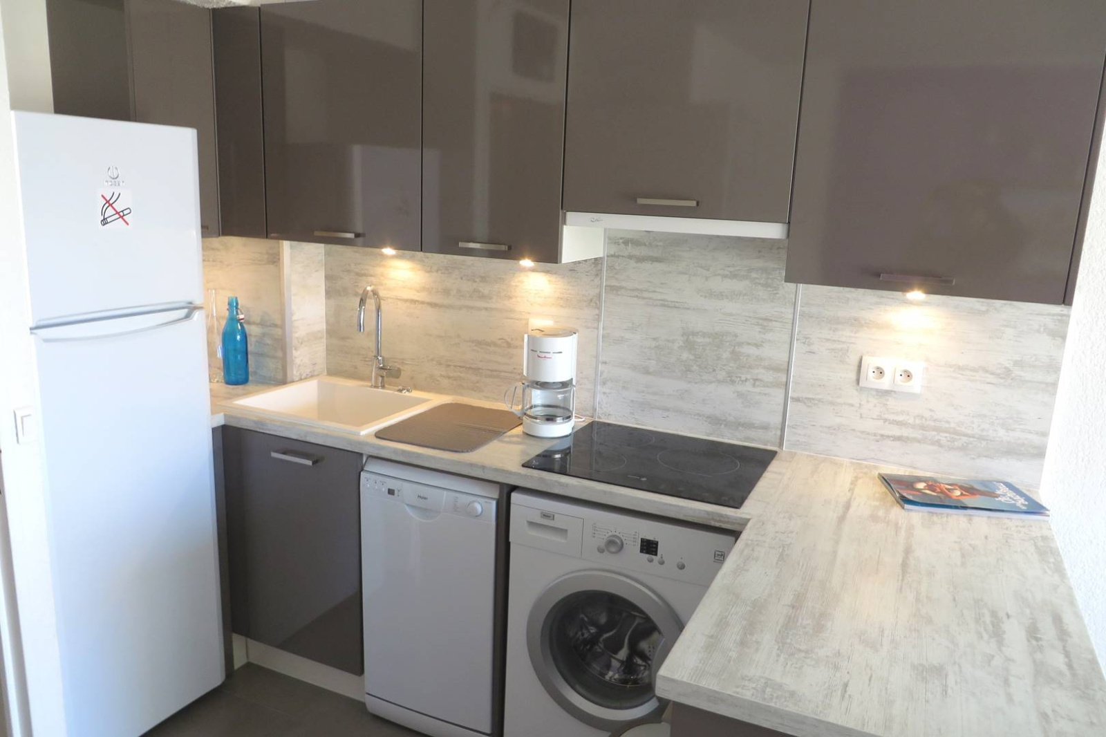 Bel appartement rénové avec goût à proximité de la plage du Môle, des commerces et du centre port. Il se compose d'une pièce vie avec coin cuisine équipée, séjour avec canapé convertible et terrasse, une chambre, salle d'eau avec douche , WC indépendant, une cabine avec fenêtre. Un parking public gratuit est situé devant la résidence.