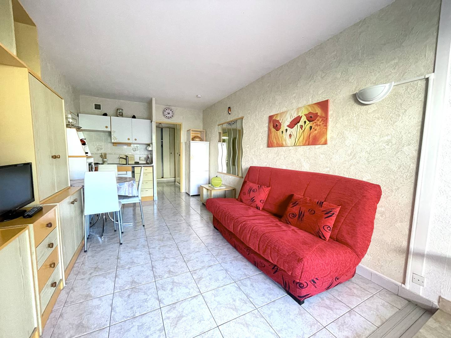 Nous vous proposons un agréable studio en rez de jardin pouvant accueillir confortablement 4 personnes. Vous trouverez dans le séjour cuisine un canapé convertible et dans la loggia fermée un lit 140 . Une grande terrasse au milieu des espaces verts de la copropriété complète cet appartement qui bénéficie également d'un accès à la piscine de la résidence.