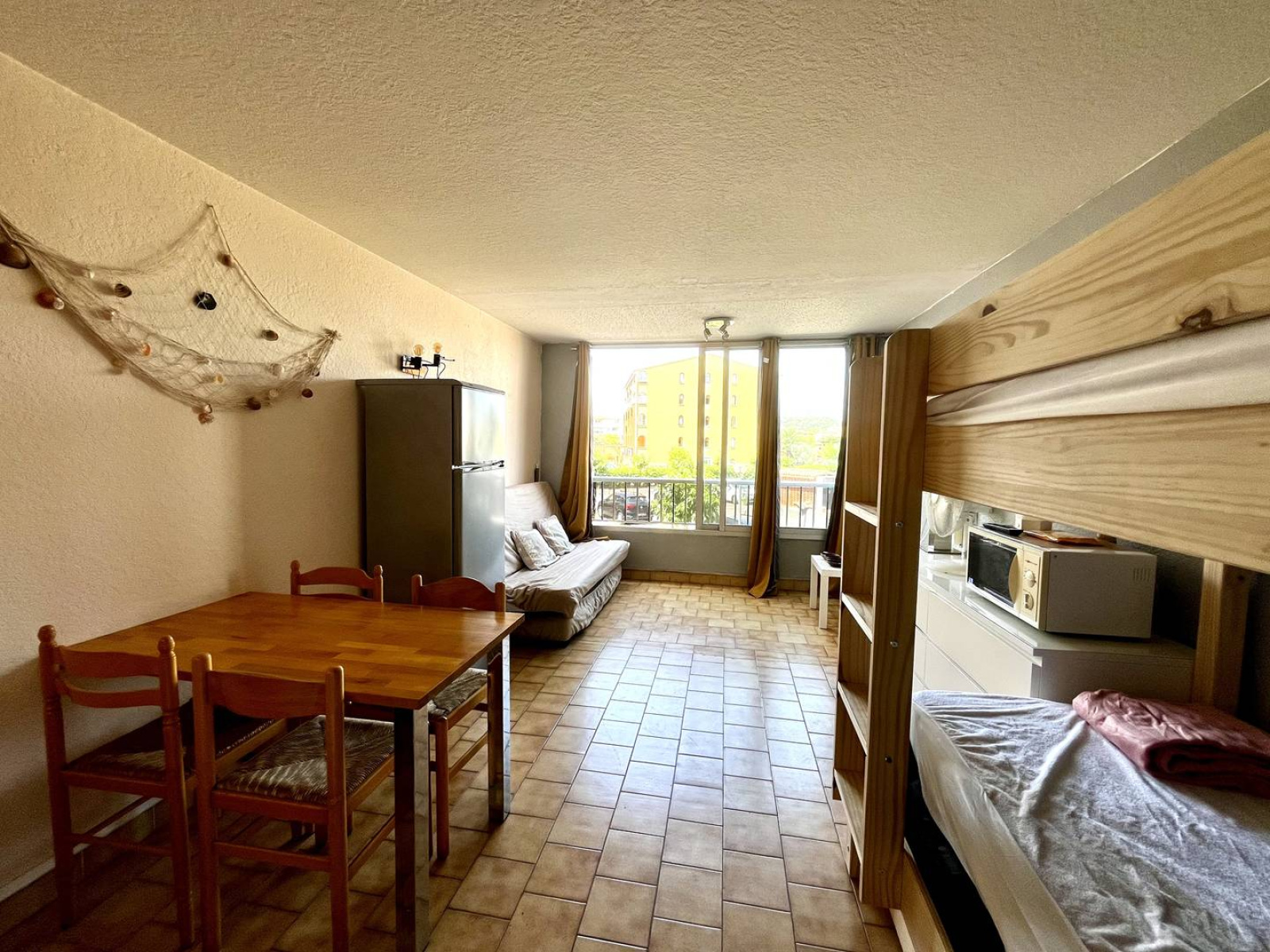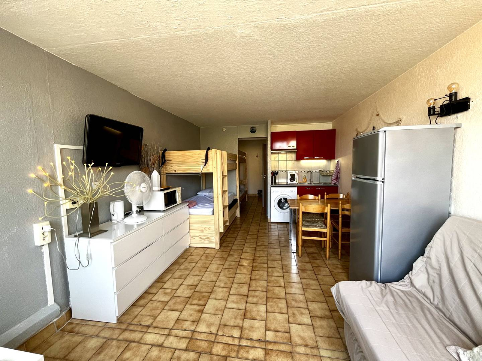 Résidence Panoramic - Richelieu ; appartement fonctionnel composé d'une entrée avec lits superposés, une salle d'eau avec WC, une pièce de vie avec canapé convertible