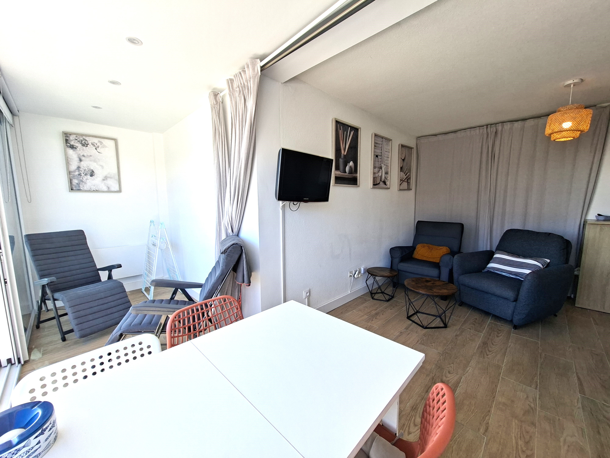 La loggia vitrée intégrée à la pièce de vie a été intégralement isolée, les baies coulissantes sont neuves