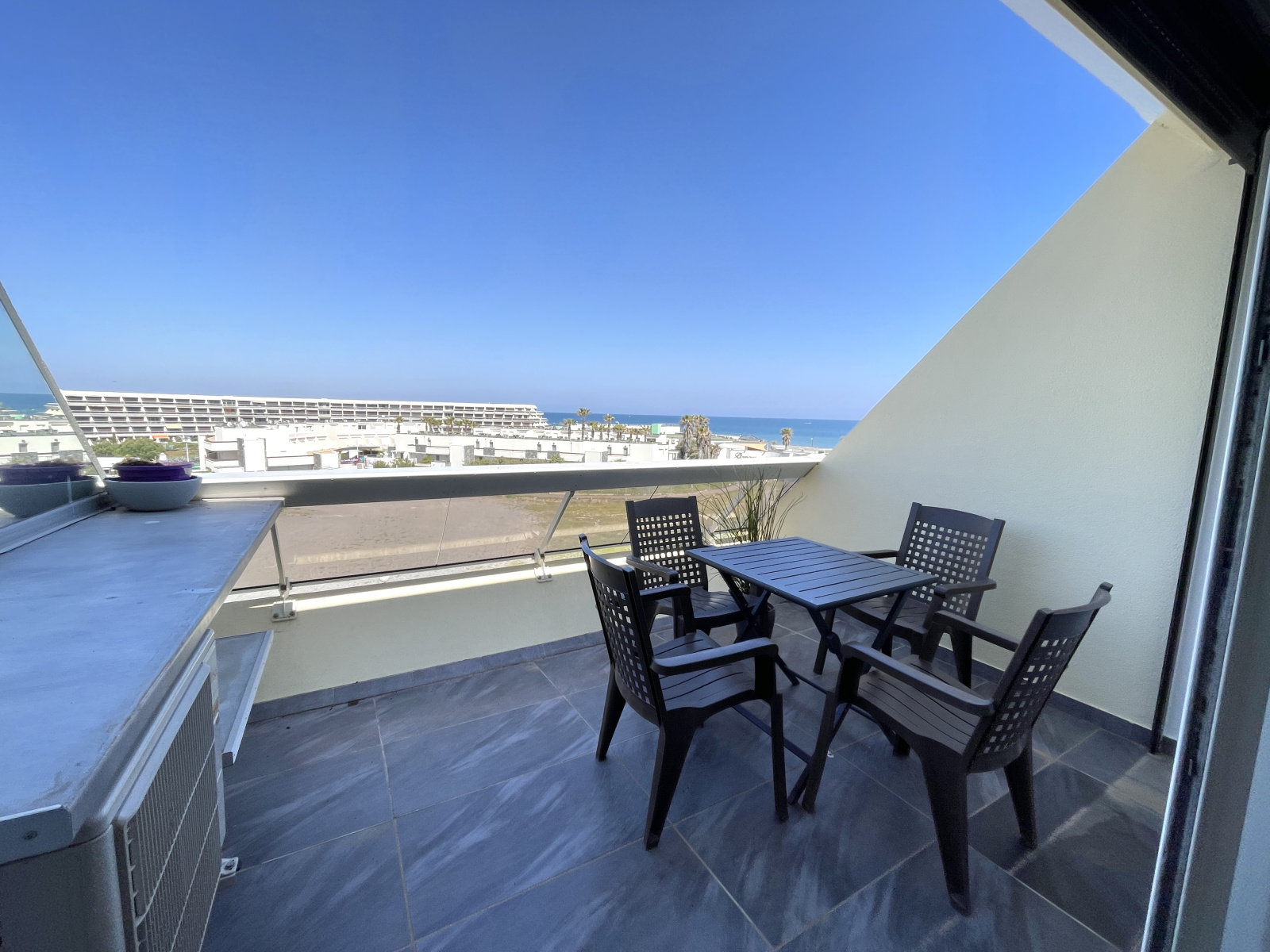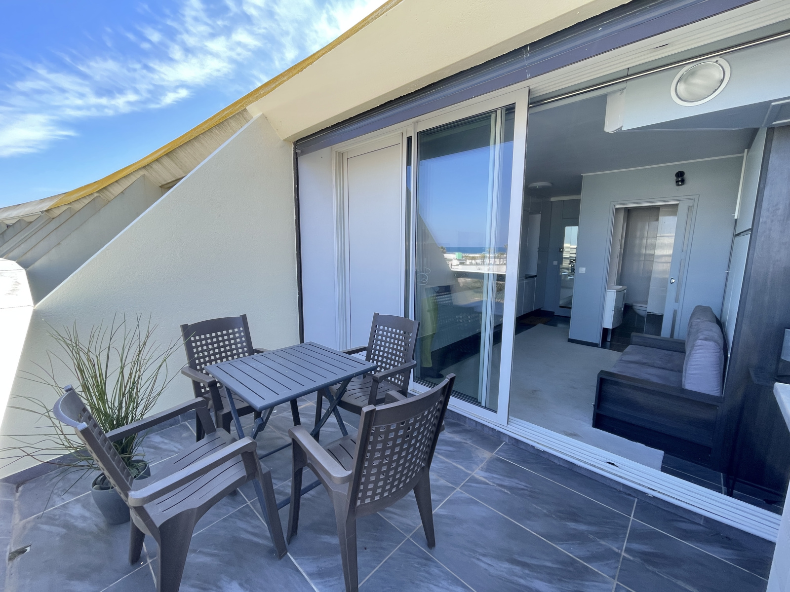 Le Cap d'Agde (34300)Situé au 4ᵉ étage avec ascenseur, dans le quartier naturiste du Cap d’Agde, ce studio entièrement rénové et climatisé offre un cadre idéal en bord de mer.
