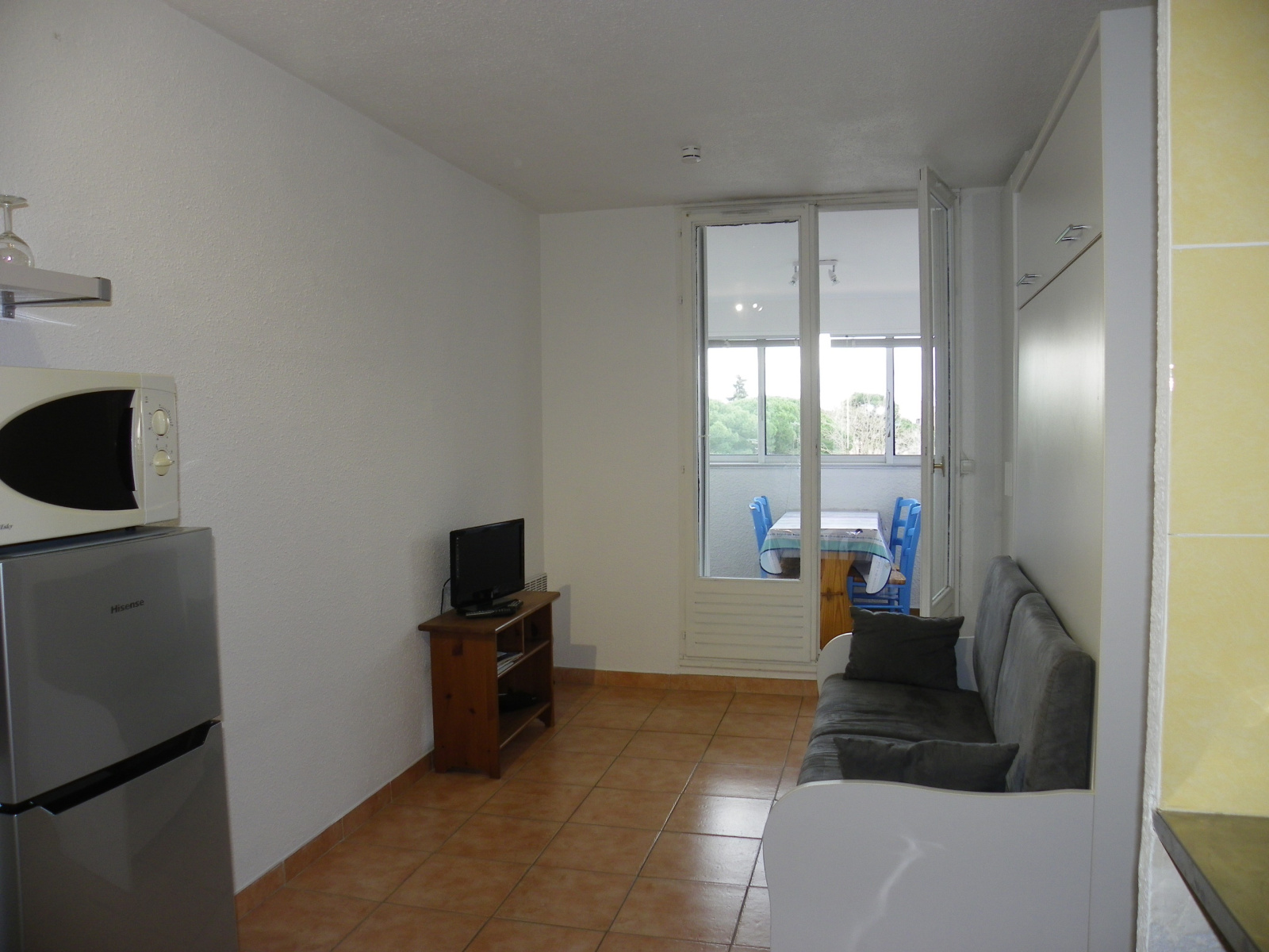 Composé d'un séjour cuisine donnant sur loggia vitrée, salle d'eau renovée,