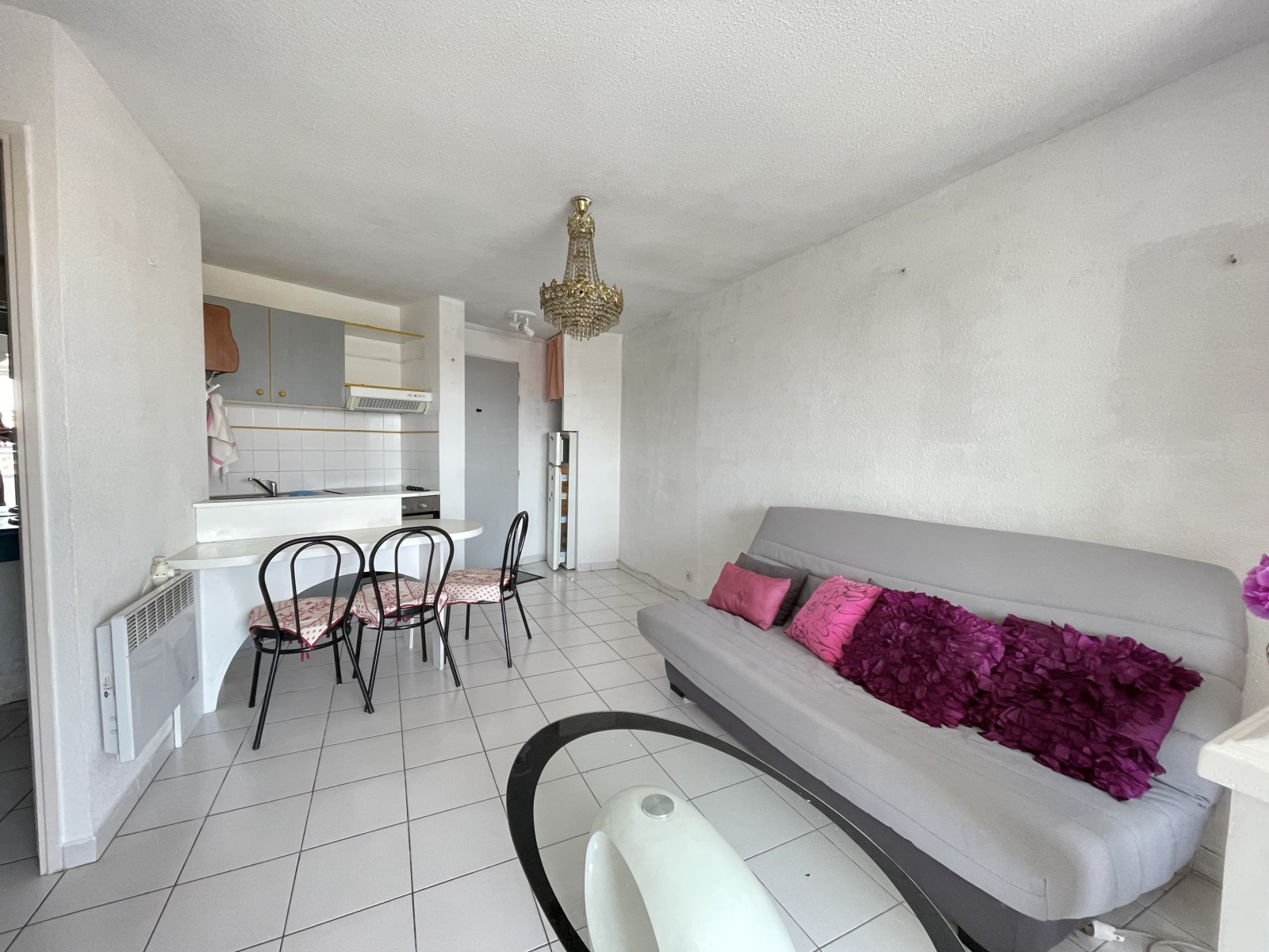 Bel appartement d'un volume intérieur de 35 m², Il se compose d'un séjour cuisine, WC indépendants, salle d'eau et une chambre. Sur la loggia vitrée un aménagement a été configuré pour créer un epace de couchage pour enfant,