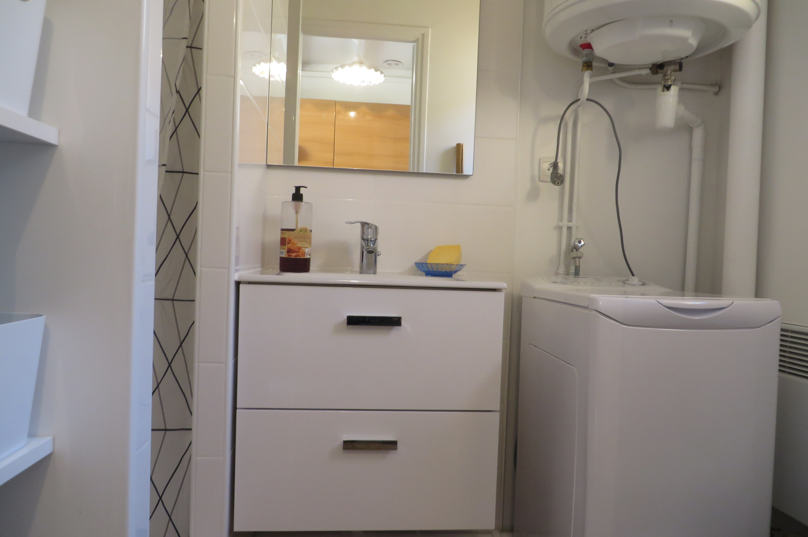 Composé d'un séjour cuisine avec deux chambres, salle de bain rénovée avec fenêtre,